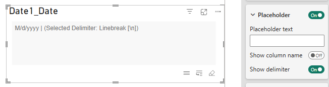 The delimiter button in the Quick menu can be activated/deactivated via this setting if no change to the Delimiter is desired/necessary by the report user, or if some space is to be saved. The default Delimiter can be configured in the formatting pane regardless of whether this setting is activated/deactivated.
