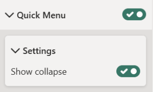 This setting lets the user enable a Quick menu on the left side of the visual to have quick access to certain features. Which settings that Quick Menu should include will be set under Settings.